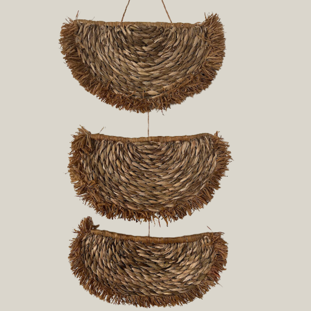 These charming and joyful ornamental pendants are handcrafted from raffia.