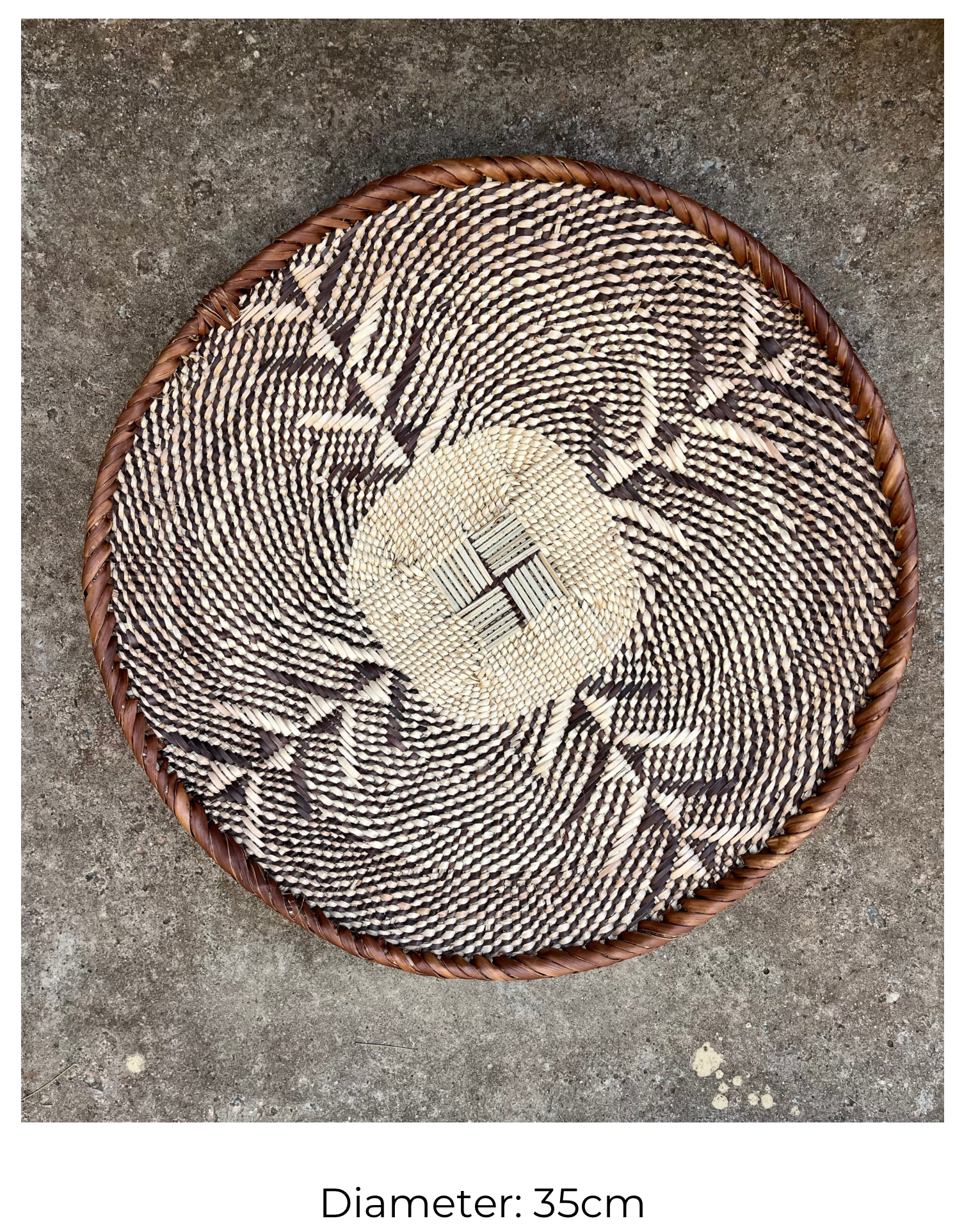 Binga wall baskets have been on trend for good reason: they're stunning in their simplicity, and no two are exactly alike. Each one is handcrafted by artisans in Zimbabwe, in the traditional technique of the Tonga people. The flatness of these particular ones makes them ideal for wall decor.