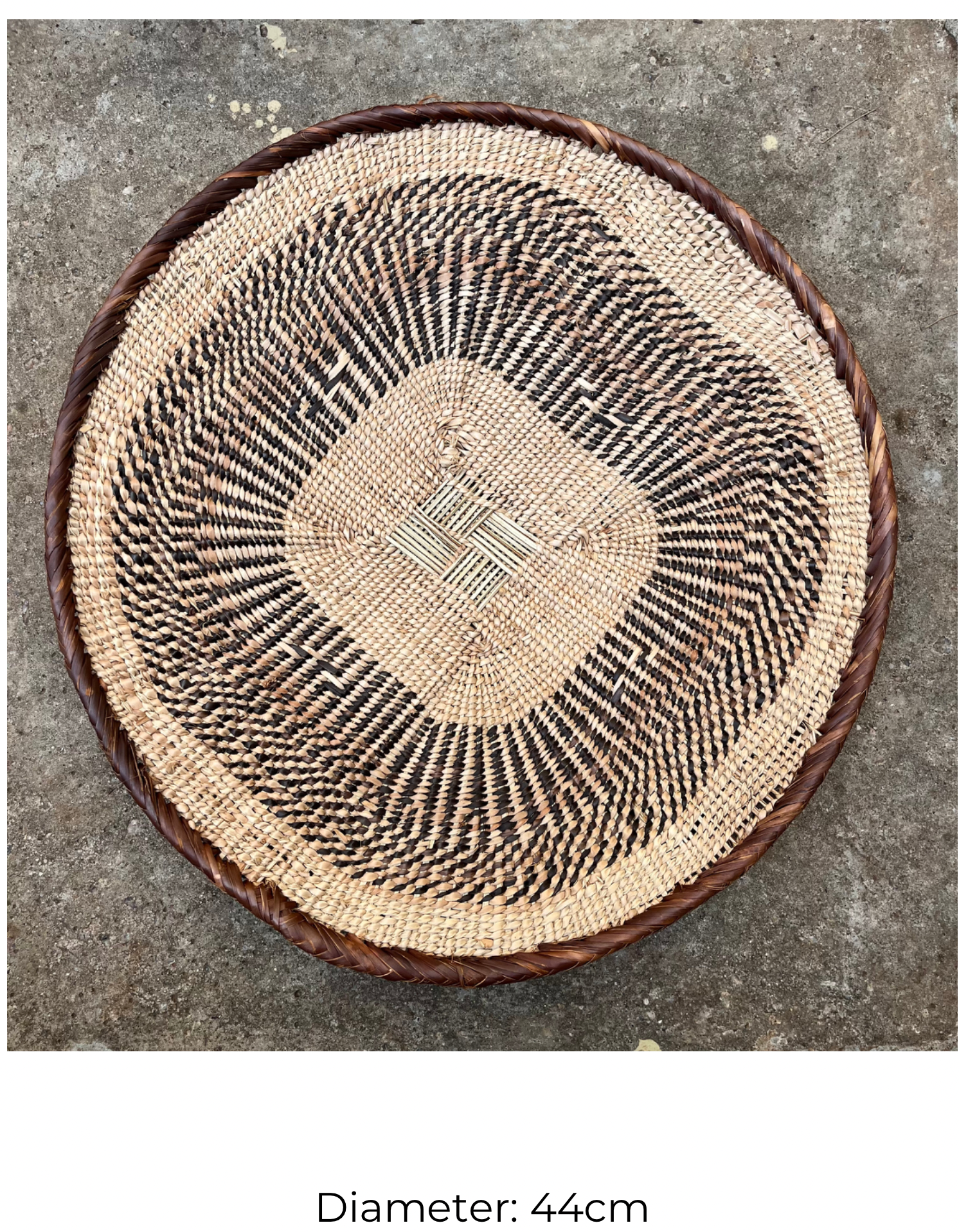 Binga wall baskets have been on trend for good reason: they're stunning in their simplicity, and no two are exactly alike. Each one is handcrafted by artisans in Zimbabwe, in the traditional technique of the Tonga people. The flatness of these particular ones makes them ideal for wall decor.