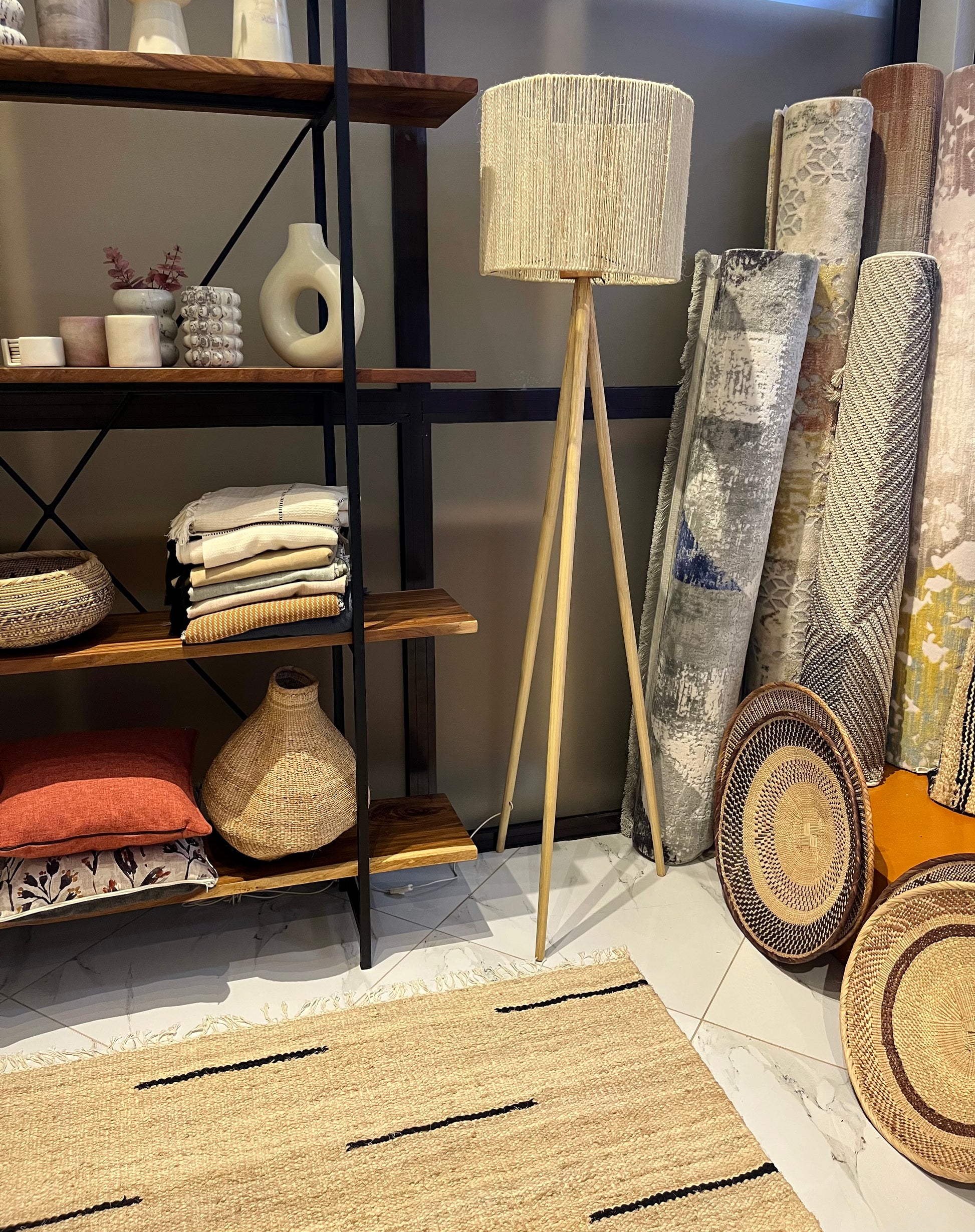 Handmade from Lusambya wood, this tripod lamp is a stunning addition to any space. Note that indicated price is for the stand only. Lampshades are sold separately.